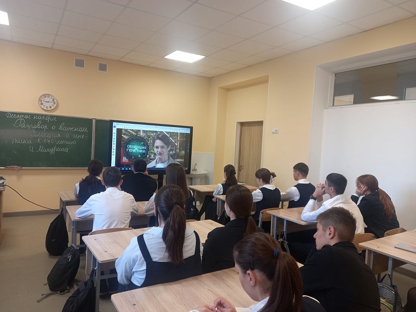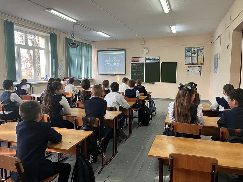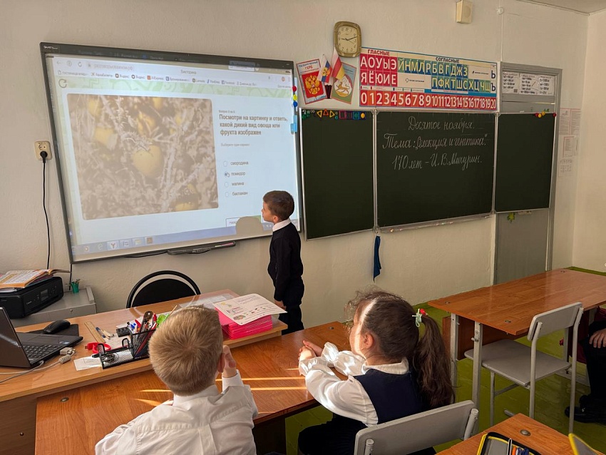 10 ноября прошло познавательное занятие из цикла «Разговоры о важном». Оно было посвящено селекции, генетике и 170-летию со дня рождения выдающегося российского ученого-селекционера И.В.Мичурина. В ходе занятия обучающиеся узнали, кто такие ученые-селекционеры и каким образом они помогают растениям становиться вкуснее, крупнее и устойчивее к холодам, чем прославился И.В. Мичурин и какими его открытиями гордится вся страна. Занятие сопровождалось красочной презентацией, видеороликами и интерактивной викториной, в которой дети сами пытались угадать предков современных растений.