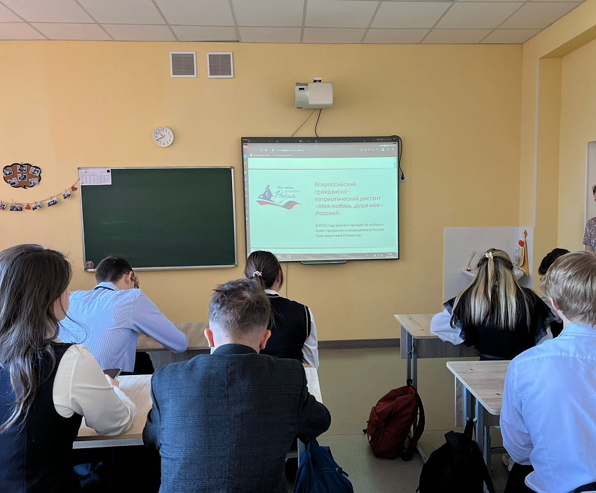 18 ноября 2025 года в школе среди обучающихся 9-11 классов прошёл Всероссийский гражданско‑патриотический диктант «Моя любовь, душа моя — Россия!». Мероприятие было приурочено к Году защитника Отечества и организовано в рамках IV сезона просветительской акции.