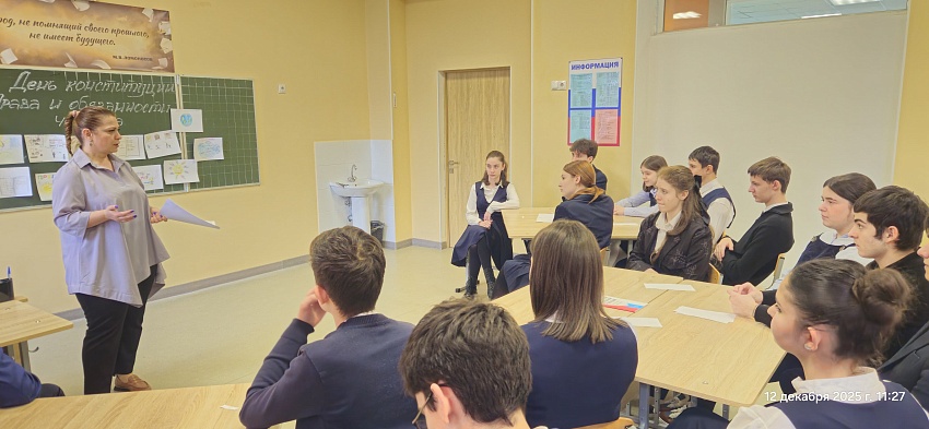 С 8 по 13 декабря 2025 года в школе традиционно прошла Неделя правовых знаний. Неделя была приурочена Дню прав человека и Дню Конституции. Цель недели: повысить уровень правовых знаний участников образовательного процесса. В рамках недели были проведены правовые уроки, выставка рисунков, брейн-ринг в 10-11 классах.